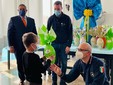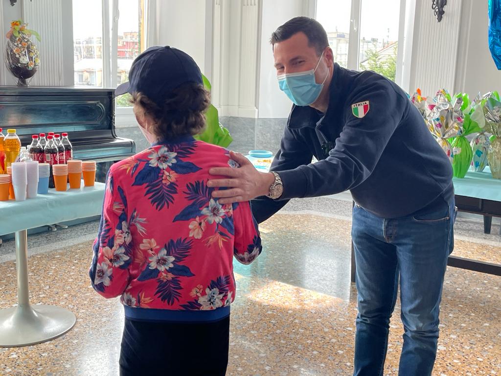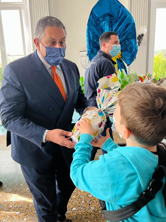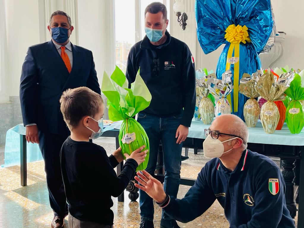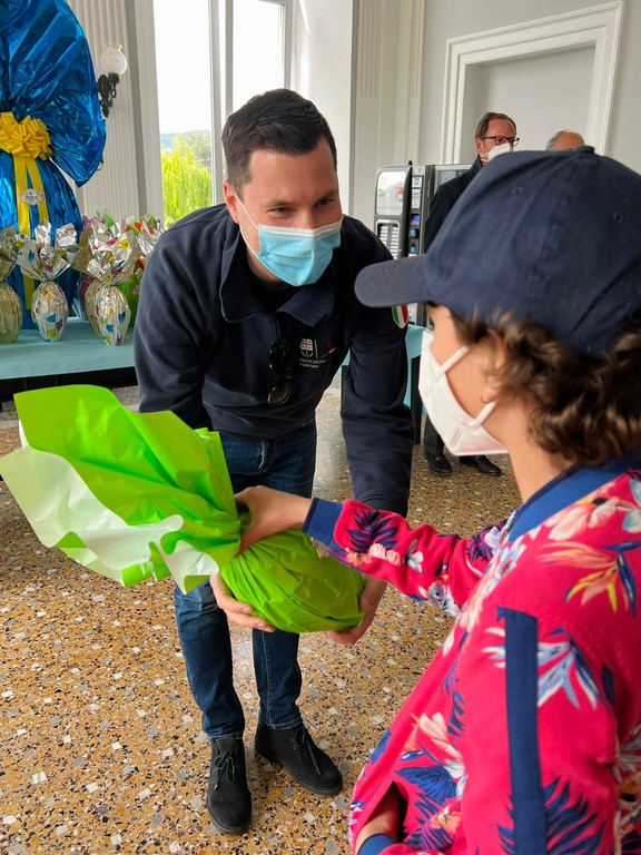 Curcio ha portato in dono delle uova di Pasqua da lasciare ai piccoli.