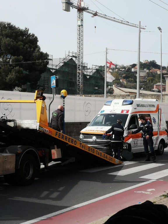 Nessuna conseguenza per i militi in servizio, mentre la donna è stata trasportata all'ospedale Villa Scassi in codice giallo