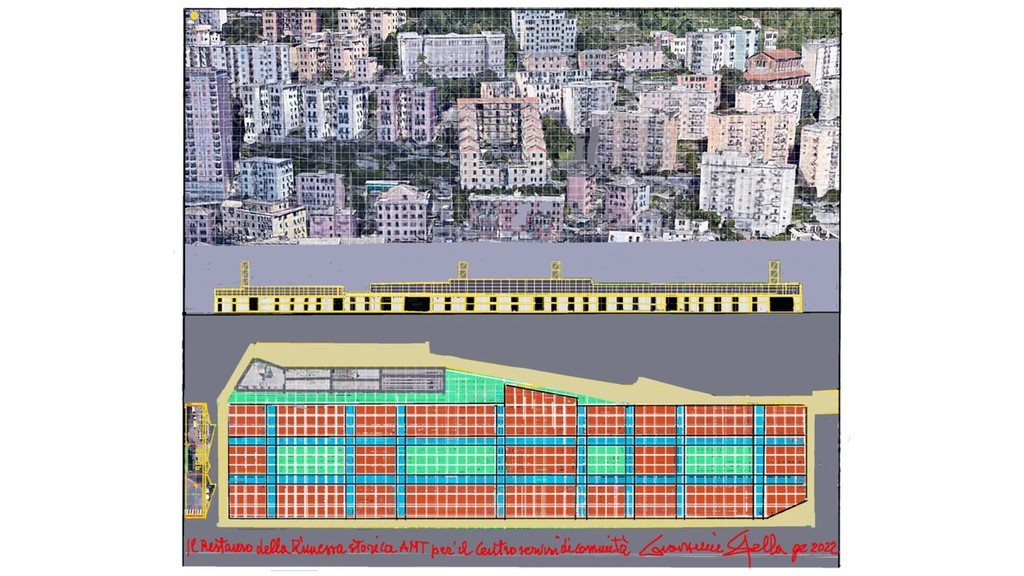 Staglieno, l'architetto Spalla presenta un progetto alternativo per la rimessa: "Nessuna demolizione, diventi una casa di quartiere" (Foto)