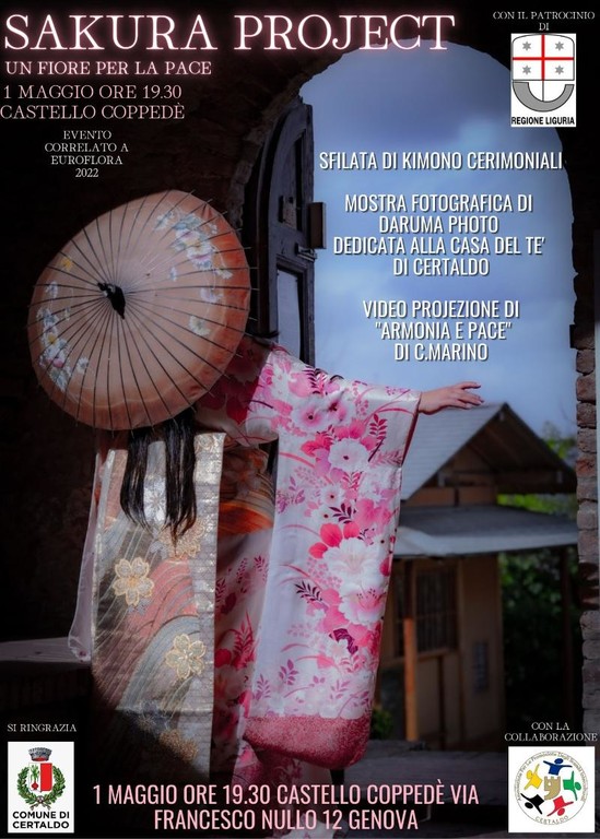 Domenica 1 maggio alle ore 19.30 presso il prestigioso Castello Coppedè, Sakura Project Arte in Movimento - iniziativa artistica dedicata alla cultura del Sol Levante di Genova Dreams aps - è lieta di presentare con il patrocinio di Regione Liguria “Hanami: Un Fiore per la Pace”, il primo appuntamento correlato a Euroflora 2022 con un messaggio importante per il periodo che stiamo vivendo.