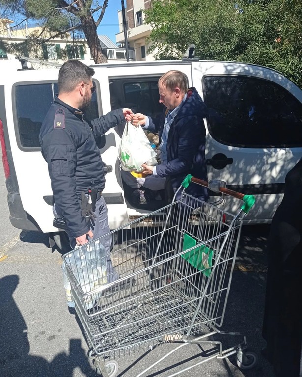 Poliziotti della questura fanno una spesa di solidarietà a una famiglia ucraina
