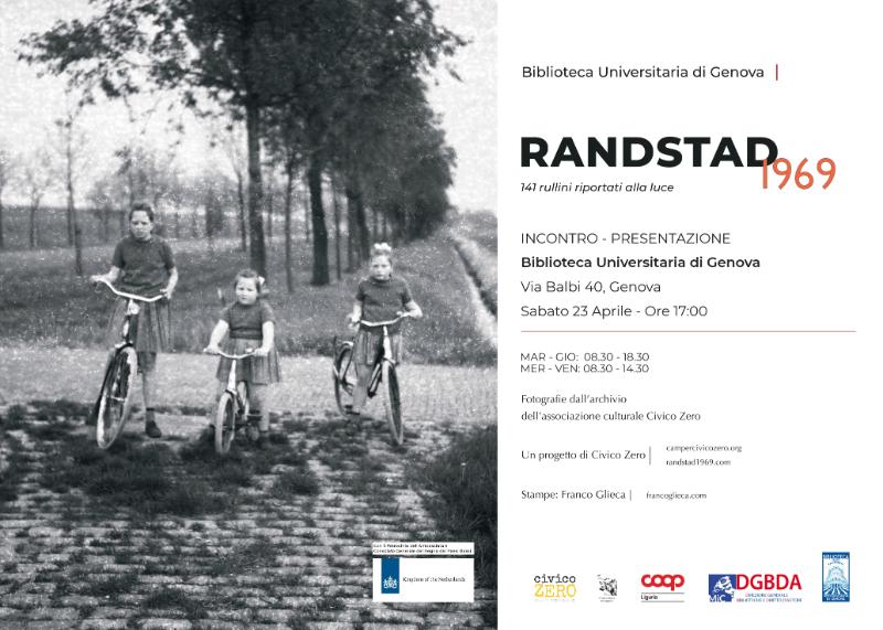 Sarà inaugurata sabato 23 aprile la mostra fotografica “Randstad1969-141 rullini riportati alla luce”, che fino al 25 giugno 2022 sarà attiva alla Biblioteca Universitaria di Genova. L'esposizione, che gode del patrocinio dell’Ambasciata e Consolato Generale del Regno dei Paesi Bassi, nasce su iniziativa dell’associazione culturale “Civico Zero”.