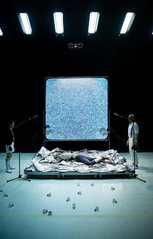 Lo spazio scenico è un palco bianco e diafano che di volta in volta ospiterà giocatori di baseball che con la complicità degli spettatori affermano di giocare a badminton, un drone che scruta il pubblico e copiose nevicate. La visione di ciò che accade sarà continuamente manipolata, esattamente come spesso accade con la verità.