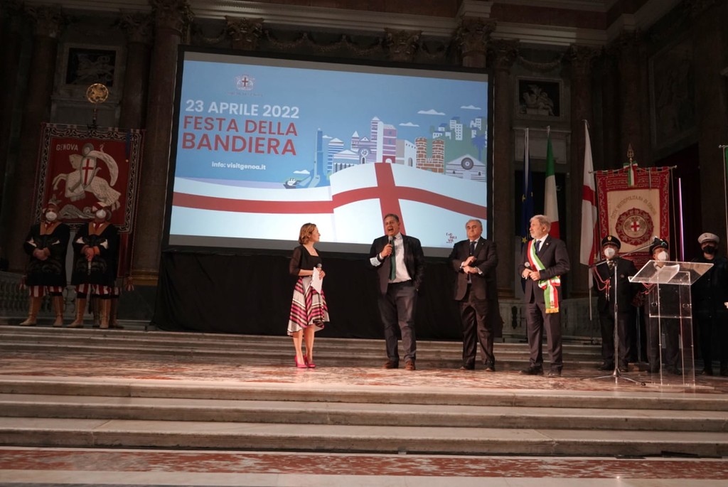 "Oggi è una bella giornata siamo qui con il principe Alberto nostro vicino di casa, con sui stiamo lavorando sul territorio del ponente ligure per farlo crescere – ha detto il presidente di Regione Liguria Giovanni Toti - La bandiera di Genova è qualcosa di più grande di noi, vuol dire tornare indietro di molti secoli e ricordare la storia di tanti uomini, sia quelli illustri che hanno lasciato un segno, sia quelli meno famosi che comunque hanno contribuito a fare di Genova quello che è. Recuperare questo ‘culto laico’ della bandiera è qualcosa di molto positivo che il Comune di Genova ha fatto per puntualizzare e ricordare con orgoglio la nostra storia e premiare persone che la arricchiscono di nuovi capitoli per costruire il futuro concreto di domani, imparando le lezioni come quelle che purtroppo abbiamo dovuto imparare dal Covid e dolorosamente della guerra. Così come le ha imparate questa città grazie ai tanti suoi momenti positivi, come i suoi commerci e la ricchezza della Repubblica Marinara e i suoi momenti negativi, come la Grande peste. Per questo ritrovarci oggi in una sala, simbolo di questa città tutti insieme per ricordare la Croce di San Giorgio, ci infonde molto orgoglio e anche tanta prospettiva e credo sia molto importante".