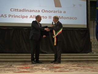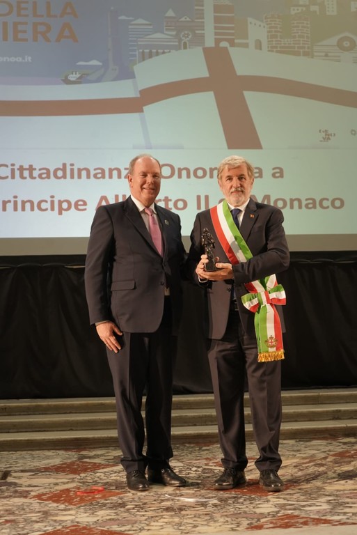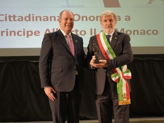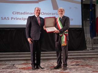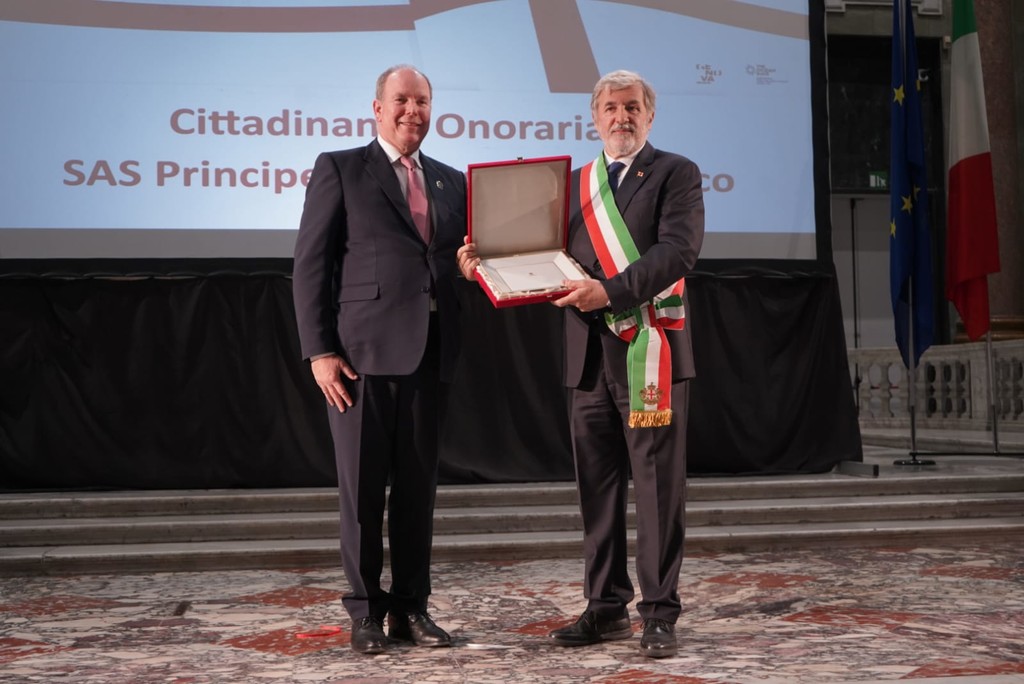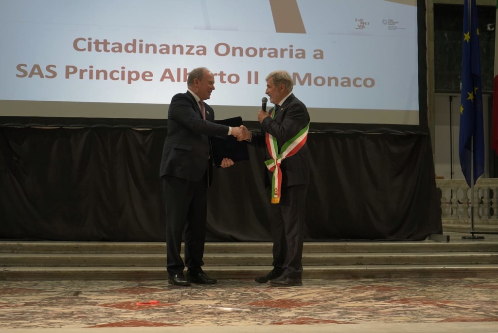 Conferita oggi dal sindaco di Genova Marco Bucci, durante le celebrazioni della Festa della Bandiera e di San Giorgio a Palazzo Ducale, la cittadinanza onoraria al Principe Alberto II di Monaco. Il Principe ha ricevuto in dono dal primo cittadino la statuetta raffigurante François Grimaldi "la Malizia", l'antenato Genovese dei Grimaldi che ha fondato la dinastia dei Grimaldi di Monaco.