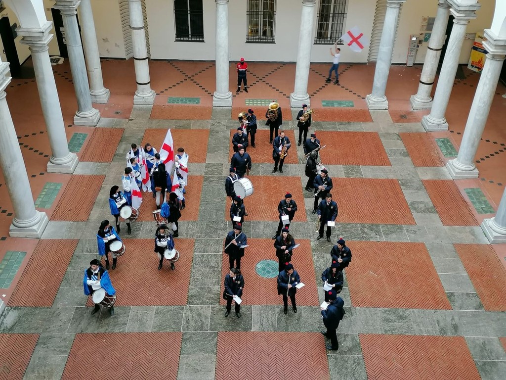 Al termine della cerimonia, la festa si è spostata nel cortile di Palazzo Ducale con l’esibizione di pattinaggio creativo, delle bande di Voltri, Pegli, Pontedecimo e Bolzaneto e con gli sbandieratori di Lavagna in piazza De Ferrari.