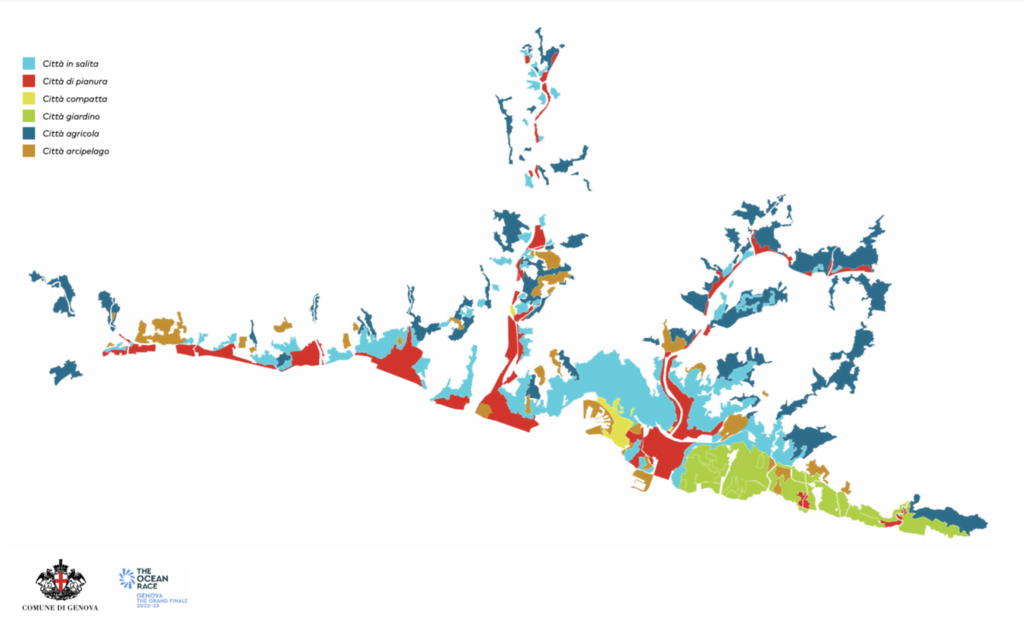 Genova come “città in salita”, “città di pianura”, “città compatta”, “città giardino”, “città agricola” e “città arcipelago”.