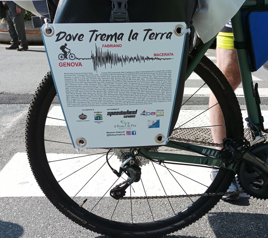 Originario di Pra’, 36 anni il prossimo luglio, Massimo è appena partito questa mattina, da piazza Gaggero a Voltri, di fronte alla sede del Municipio VII Ponente: è il progetto ‘Dove trema la terra’, un viaggio da mille e seicento chilometri in bicicletta “attraverso i paesi del cratere sismico del 2016 tra Marche e Abruzzo. Ho deciso di partire dalla mia città natale, Genova, per creare una sorta di collegamento con il centro Italia che da anni, ormai, vive con il terribile problema della terra che trema”.