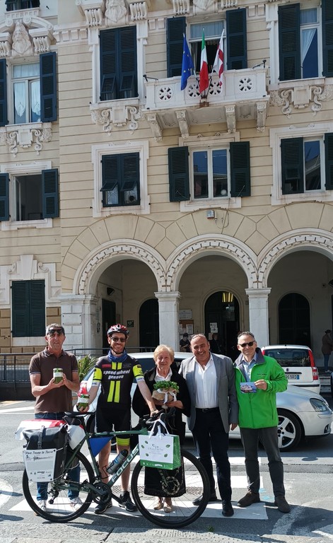 Ad aderire entusiasticamente al progetto di Massimo, prima ancora di inforcare la bicicletta, ci sono Speedwheel di Savona, Abaco Promo di Genova, i Pescatori di Pra’ e l’azienda Il pesto di Pra’ di Bruzzone e Ferrari.
