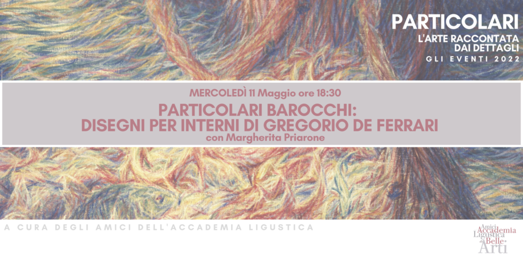 Prosegue il ciclo di incontri Particolari - L'Arte raccontata dai dettagli: e mercoledì 11 maggio sarà la volta del dodicesimo incontro dal titolo: Particolari barocchi: disegni per interni di Gregorio De Ferrari che avrà come relatrice la dottoressa Margherita Priarone, conservatrice dei musei di Strada Nuova