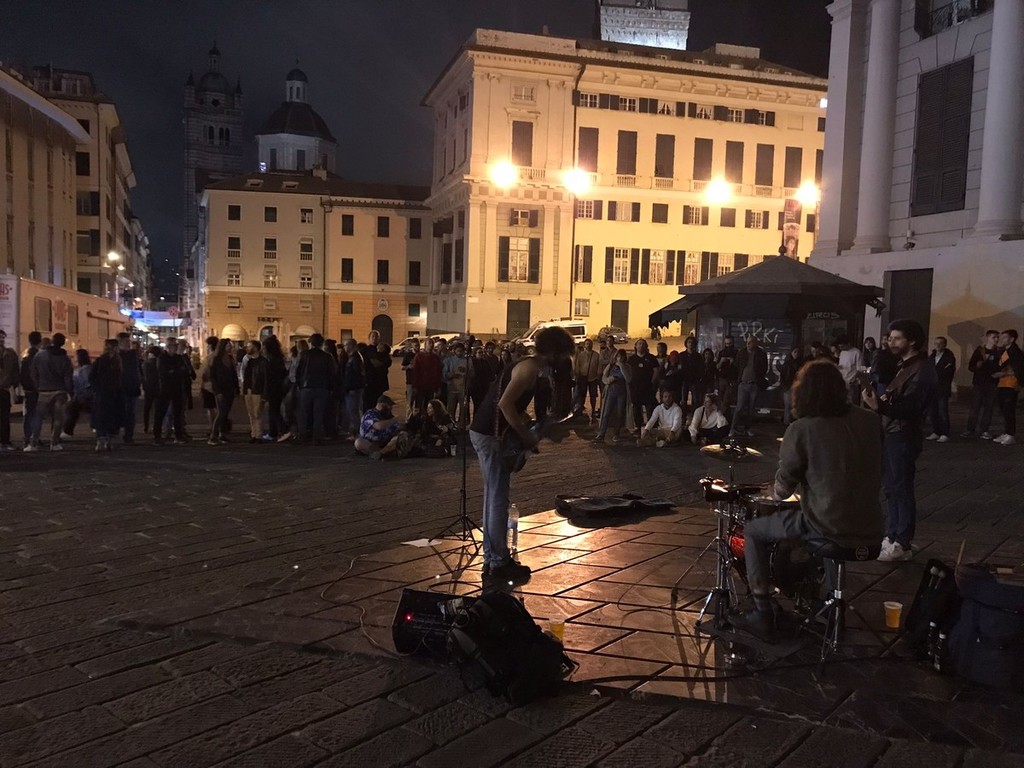 In una serata genovese come tante altre, in centro storico in piazza Matteotti, ci si è trovati di fronte ad uno spettacolo unico e raro, anzi rarissimo. Un trio di musicisti suonano dal vivo senza alcuna richiesta se non quella di allietare e alleggerire una serata primaverile per i genovesi. La band è guidata dal giovane Rodolfo Bignardi, con Daniele al basso e Francesco alla batteria. Avvicinandosi ai piedi della chiesa del Gesù, si può ascoltare un rock movimentato, che richiama Jimi Hendrix, i Red Hot Chili Peppers, ma anche un sound più "soft" come lo chiama lo stesso Rodolfo: Bruno Mars o i Tears for Fears. Bravissimi senza dubbio alcuno.