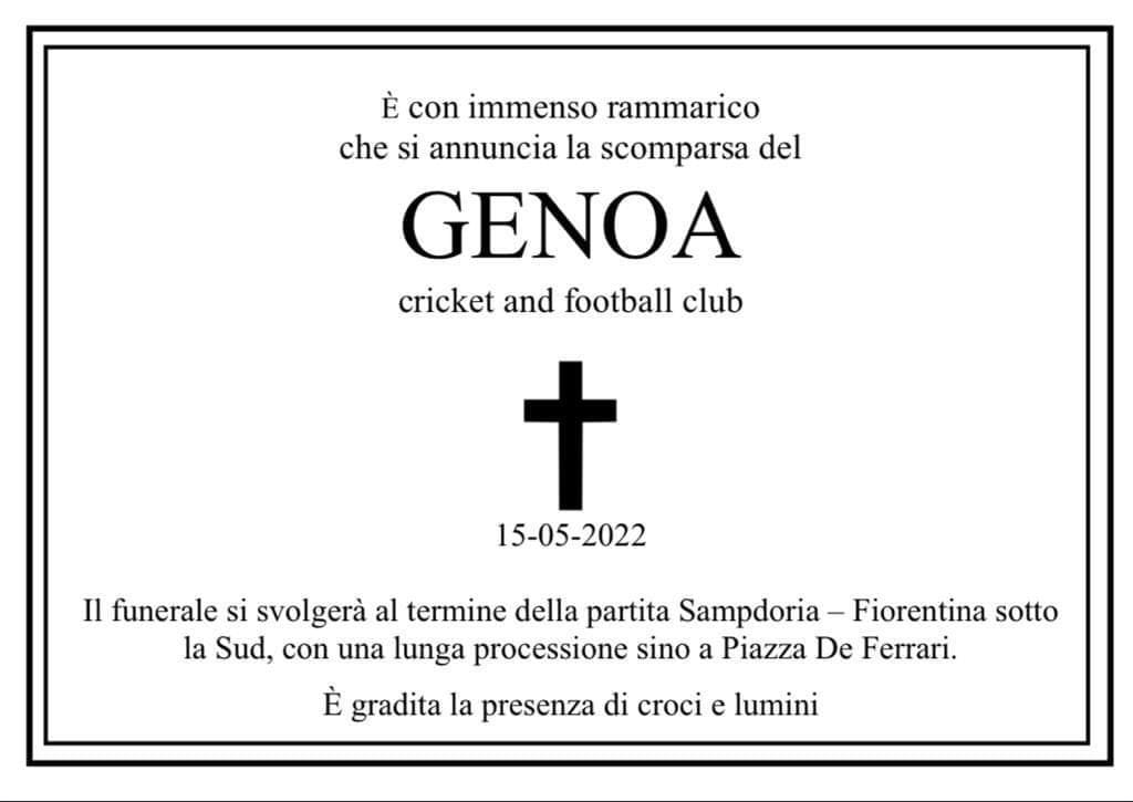 Oggi ci sarà Sampdoria Fiorentina a Marassi, ma già da stamattina i tifosi blucerchiati hanno iniziato i “funerali “dei cugini rossoblù. Infatti ieri, se la sconfitta del Cagliari ha permesso ai blucerchiati di restare in Serie, non è valso lo stesso per il Genoa che si è visto retrocedere in serie cadetta . I ricordi del 2011 sono subito tornati in mente ai tifosi blucerchiati che hanno deciso di rendere pan per focaccia ai genoani che in quella occasione avevano festeggiato la retrocessione della Sampdoria con caroselli per tutta la città. Adesso gli sfottò sono solo sui social, ma durante e dopo la partita di stasera il popolo blucerchiato esprimerà tutta la sua gioia.