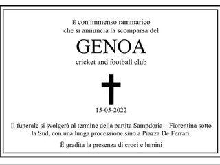 Oggi ci sarà Sampdoria Fiorentina a Marassi, ma già da stamattina i tifosi blucerchiati hanno iniziato i “funerali “dei cugini rossoblù. Infatti ieri, se la sconfitta del Cagliari ha permesso ai blucerchiati di restare in Serie, non è valso lo stesso per il Genoa che si è visto retrocedere in serie cadetta . I ricordi del 2011 sono subito tornati in mente ai tifosi blucerchiati che hanno deciso di rendere pan per focaccia ai genoani che in quella occasione avevano festeggiato la retrocessione della Sampdoria con caroselli per tutta la città. Adesso gli sfottò sono solo sui social, ma durante e dopo la partita di stasera il popolo blucerchiato esprimerà tutta la sua gioia.