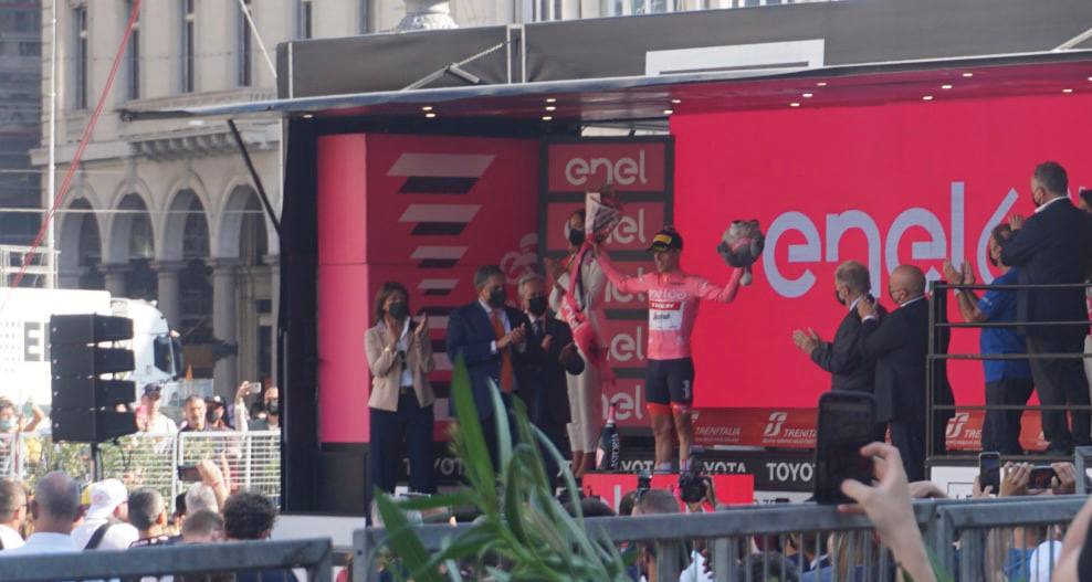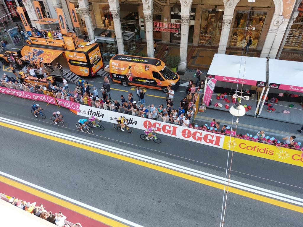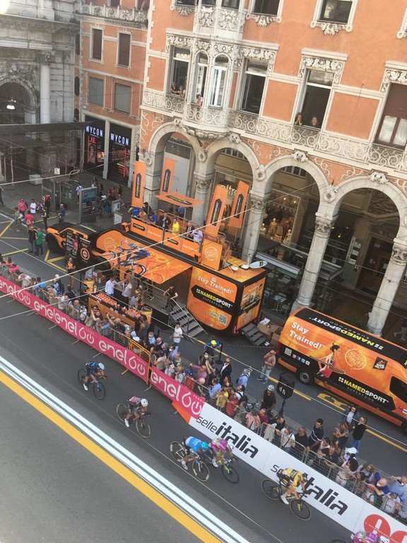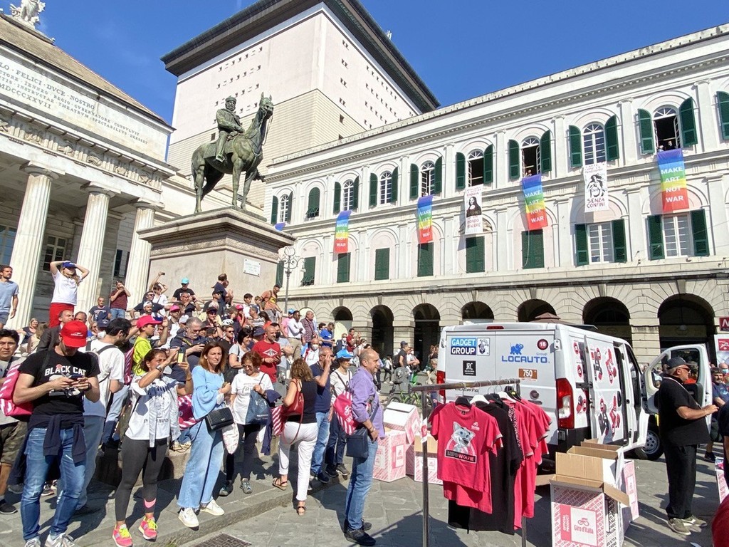 È stato un pomeriggio di festa per la città di Genova, che si è preparata al ritorno della corsa rosa in Liguria dopo sette anni. Dal primo pomeriggio via XX Settembre, piazza De Ferrari, il Ponte Monumentale e il piazzale della chiesa di Santo Stefano sono stati presi d’assalto da tifosi e appassionati che hanno immortalato il passaggio dei propri beniamini.