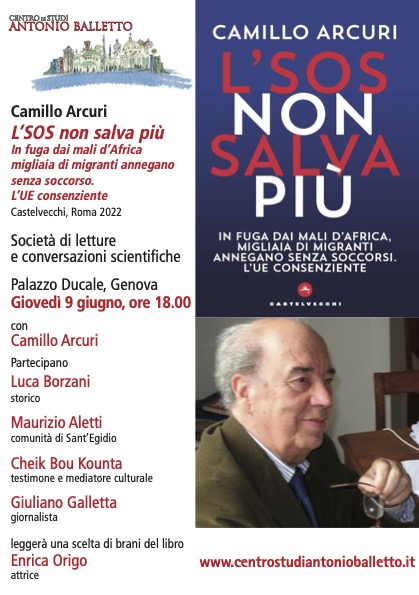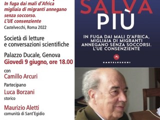 ‘L’Sos non salva più’. Giovedì 9 giugno in una conferenza organizzata dal Centro studi Antonio Balletto, alla Società di letture e conversazioni scientifiche, a Palazzo Ducale, si affronta il tema: ‘In fuga dai mali d’Africa migliaia di migranti annegano senza soccorso. L’Ue consenziente’, libro-inchiesta di Camillo Arcuri. L’incontro, suggerito dalla consigliera municipale Bianca Vergati, del Municipio VIII Medio Levante, è alle 18.