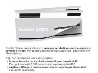 “Con questa giornata di sospensione del servizio vogliamo sensibilizzare i lavoratori e più in generale i consumatori sulle gravissime difficoltà che le nostre imprese vivono quotidianamente a causa delle elevate commissioni che dobbiamo pagare sui buoni pasto. – dichiara Alessandro Cavo, Presidente FEPAG FIPE-CONFCOMMERCIO Genova – Parliamo di una vera e propria tassa occulta che supera anche il 20% del valore del buono”.