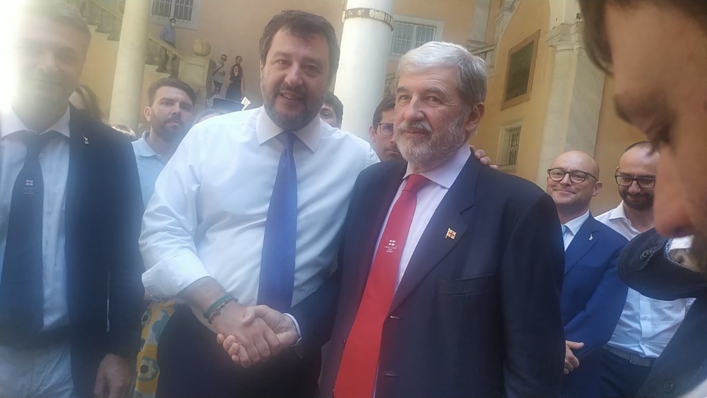 Matteo Salvini è arrivato a Genova in mattinata per un colloquio con il sindaco Marco Bucci e forse per mettere, o almeno provarci, il cappello sul bis del primo cittadino nonostante la debacle della Lega che non è riuscita a raggiungere il 7 per cento, subendo un ridimensionamento netto nelle ambizioni di far parte del consiglio comunale e della giunta che Bucci ha promesso sarà pronta entro metà luglio.