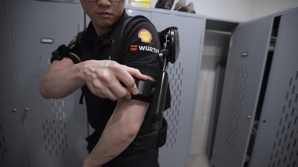 XoShoulder è stato sviluppato per venire incontro alle esigenze di chi sovraccarica le spalle durante l’attività di lavoro quotidiana. Lo scenario tipico è quello dei lavori che vengono svolti su automobili poste su piattaforme sopraelevate, dove l’operatore tende ad affaticare le spalle, dovendo mantenere sollevati strumenti pesanti per tempi prolungati oltre l’altezza delle spalle. Il prototipo è equipaggiato con due motori da 70 W con una coppia di 12 N/m, ciascuno dei quali è dotato di avanzati algoritmi di controllo che lo rendono in grado di fornire supporto solo quando serve, senza intralciare i movimenti dell’operatore.