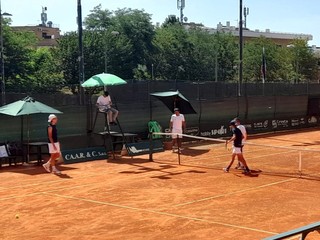Il primo doppio va via facile a favore dei toscani, con un duplice 6/3 con l’ex professionista Daniele Giorgini, oggi 38enne, insieme a Tommaso Lapucci. Più pathos nel secondo doppio con Guglielmo Verdese e Tommaso Lippolis contro Pietro Padovani e Filippo Borella. I doppi si sa, sono veloci, si giocano sul servizio, con palle intercettate a rete. Insomma in un battito d’ali può passare un set. La partita diventa incerta quando i toscani avanti 5 a 2 si fanno riprendere sul cinque pari per poi andare sotto 6 a 5. Riuscendo con alcuni ottimi punti a garantirsi il tiebreak. Una “lotteria”, il tiebreak, giocata punto a punto dove un qualsiasi scommettitore sarebbe stato ben lontano dal fare una puntata. Uno degli highlights più belli è incastonato nel primo set quando Verdese a causa di uno scivolone recupera la palla in ginocchio mettendola di là dalla rete con un lob lunghissimo e l’avversario nel tentativo di fare un vincente commette l'errore. Nel secondo set un problema fisico per Borella rallenta la corsa dei toscani come spiega il giocatore-capitano Francesco Caforio: “Eravamo avanti due a zero ma con uno stiramento dell’adduttore alla fine del primo game di Borella la sua capacità di gioco è scesa dell’80%. Di lì in avanti è stata una sofferenza ad ogni punto. Gli avversari dopo un attimo di sbandamento hanno ripreso a giocare chiudendo il set. Al supertiebreak dopo il 4 pari non siamo riusciti a tenere. Finire la giornata sul 4 a 2 sarebbe stato un ottimo risultato. Comunque i nostri avversari sono una squadra di livello alto, una formazione completa, diciamo che negli accoppiamenti non siamo stati fortunati. Vediamo cosa accadrà fra due settimane”.