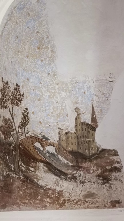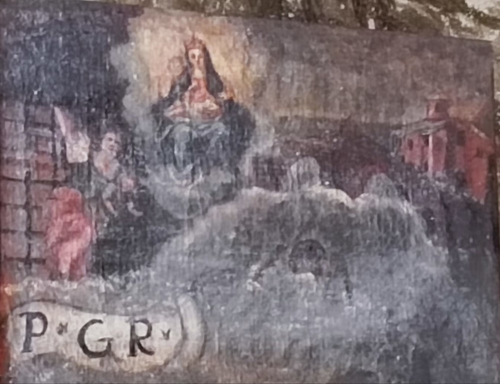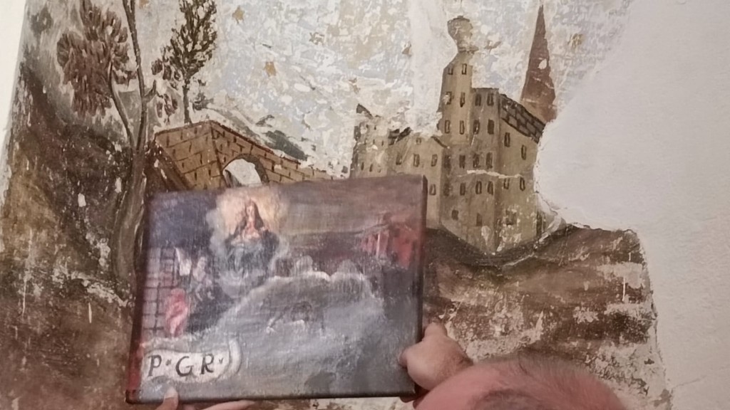 Una trentina di anni fa, dai lavori di restauro della chiesa dei Novelli Innocenti, classificato dalla Soprintendenza come bene monumentale, riemerse dall’intonaco un paesaggio che subito parve ispirato più a una veduta ligure che sarda. Se già da una prima analisi e confronti con incisioni ottocentesche la corrispondenza con Voltri pareva plausibile, grazie al ritrovamento di un quadro la conferma è arrivata in questi giorni, nell’ambito della discesa del Cristo Moro di Multedo e del Corteo Storico di Voltri per suggellare ancora una volta il legame tra Pegli, il Ponente genovese e la comunità carolina. Si tratta di un ex voto settecentesco, custodito nel Santuario di N.S. delle Grazie a Voltri. La tela rappresenta una madre e una figlia scampati a un’alluvione per cui lo scorcio è mostrato in una maniera inusuale rispetto alle incisioni ottocentesche che già erano note.