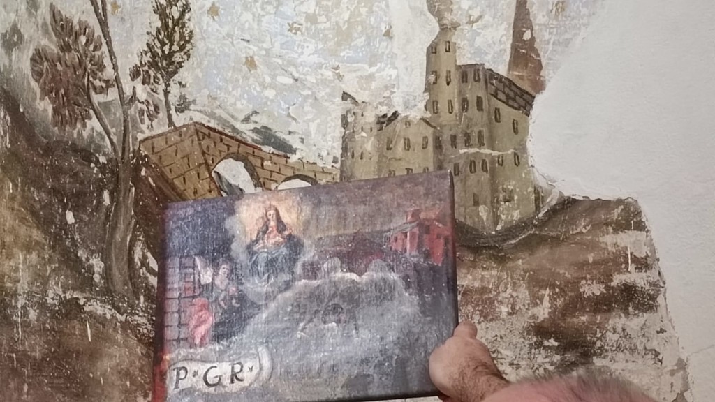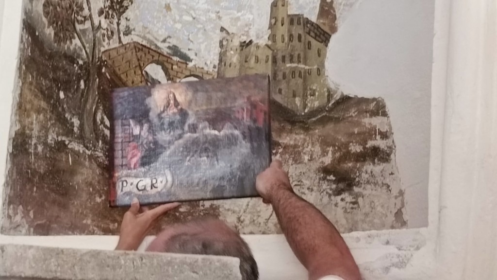 Uno scorcio di Voltri riemerge dalle mura della chiesa dei Novelli Innocenti di Carloforte. Una scoperta che ora si può attribuire con la quasi totale certezza grazie agli studi congiunti di Natalia Lapicca e Matteo Frulio, lei guida turistica di Carloforte, lui architetto voltrese, esperto delle trasformazioni storiche paesaggistiche del genovesato.