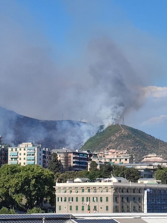 Un incendio sta interessando il bosco di monte Timone, alle spalle di Sestri Ponente.
