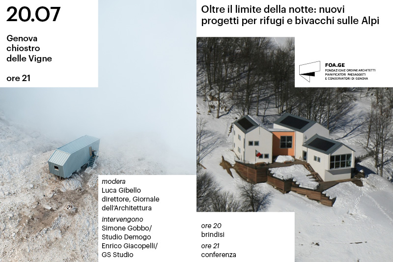 Quanti sono i rifugi e bivacchi delle Alpi? Ben più di un migliaio. O probabilmente ben più del doppio. Ma in realtà, che cos’è un rifugio alpino? Il termine ‘rifugio’ è una galassia che comprende sia i cosiddetti ‘punti d’appoggio’ a bassa quota e le strutture servite dal prospiciente e spazioso parcheggio auto, sia i manufatti incustoditi che ricevono la visita, quando va bene, d’una decina d’anime l’anno. Di questo e altro ancora si parlerà mercoledì 20 luglio dalle ore 21 nella cornice del Chiostro delle Vigne in occasione di Oltre il limite della notte: nuovi progetti per rifugi e bivacchi sulle Alpi, l’incontro a cura della Fondazione Ordine Architetti di Genova che inaugura Manomissioni, il programma culturale del nuovo consiglio di FOA.GE. Moderati da Luca Gibello, direttore del Giornale dell’Architettura, Simone Gobbo dello Studio Demogo ed Enrico Giacopelli di GStudio Architetti condivideranno le reciproche esperienze nella realizzazione di opere in alta quota. L’evento è gratuito e aperto a tutti previa iscrizione a Formagenova.it, il portale della formazione della Fondazione Ordine Architetti.