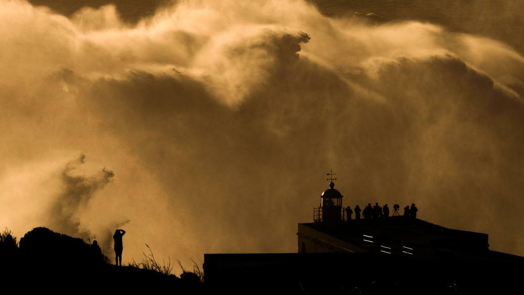 Immaginate un muro d’acqua alto così e anche di più. Il surfista portoghese c’è salito sopra con la sua tavola, poi ha iniziato la sua discesa e mentre l’onda si arrotava contro la spiaggia, lui ha coronato una straordinaria avventura sportiva e di vita.