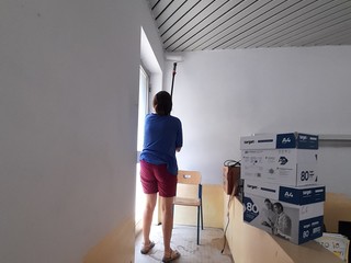 Il Comune ha messo a disposizione il materiale: stucco, pennelli, rulli e cinque latte di idropittura - le casse non permettevano di più - e gli insegnanti si sono rimboccati le maniche cimentandosi in un restyling delle aule.