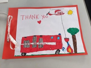 C’è tutto nel disegno di Eleonora, Emma, Serena, Andrea, Giovanni, Mila, Caterina, Sofia, Anna, Adelaide, Ginevra, Joyland, Martino, Marika, Rachel. C’è la grande autobotte dei pompieri, l’elicottero impegnato a spegnere le fiamme, ci sono gli alberi e un sole che, nonostante tutto, scalda il cuore dei bimbi che ai Vigili del fuoco dedicano un grande “Thank you”.