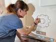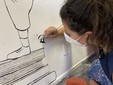 Per completare la parete le cinque professoresse che hanno lavorato al progetto hanno impiegato tre mattinate, dalle 9 del mattino fino alle 14: “Prima abbiamo stuccato il muro - spiega ancora la docente - poi abbiamo tinteggiato al parete di bianco e infine abbiamo disegnato. Ho elaborato prima a mano una bozza partendo dalla foto dell’aula, a cui ho aggiunto il disegno grazie agli strumenti digitali, e poi lo abbiamo proiettato sul muro. Abbiamo ricalcato prima a matita e poi con l’acrilico nero, realizzando così il progetto finale”.
