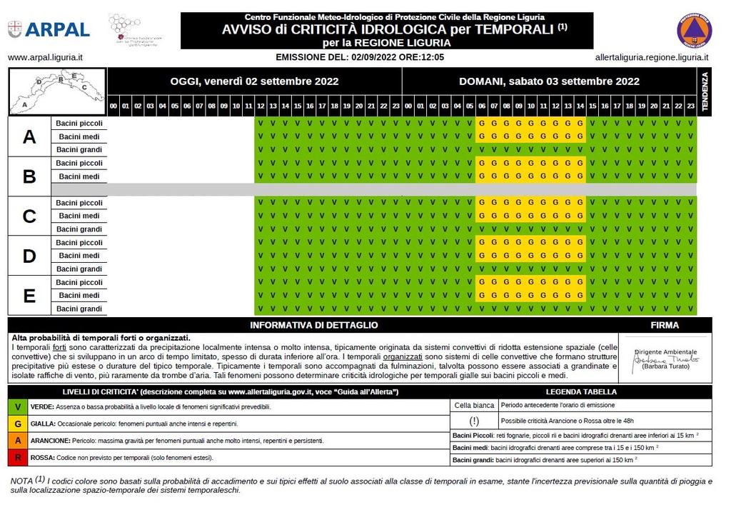 Ancora maltempo in Liguria: sabato 3 settembre allerta gialla per temporali