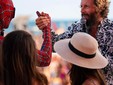 Mattia Villardita sul palco del Jova Beach Party. Lo Spiderman savonese è stato invitato per raccontare una storia di battaglia contro una grave malattia infantile.