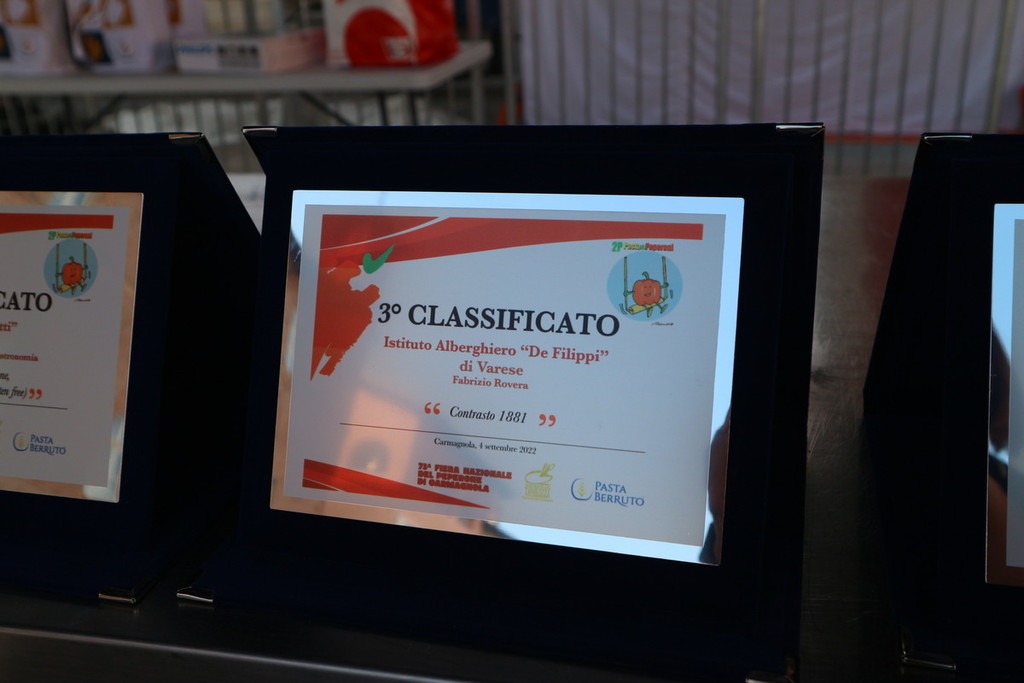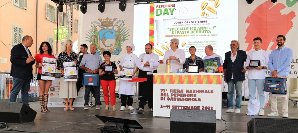 Alla premiazione sono intervenuti il sindaco di Carmagnola, Ivana Gaveglio, il presidente del Consorzio del Peperone Domenico Tuninetti, l'Amministratore delegato di Pasta Berruto, Stefano Berruto e il presidente Associazione Ristoranti della Tavolozza, Claudio Porchia.