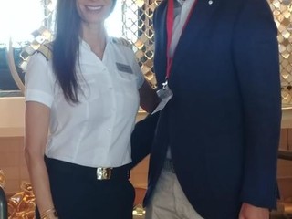 A bordo, accolti dalla Comandante Kate McCue, (la prima donna capitano di una nave da crociera americana), la Comandante del Circomare di Santa Margherita Ligure T.V. Camilla Sartori, il Vicesindaco Emanuele Cozzio e il personale dell’Ufficio Ambiente del Comune di Santa Margherita Ligure, le funzionarie Laura Mezzano e Stefania Villa.