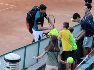 Quando il raccattapalle è anche tifoso di un tennista azzurro l'istantanea che ne esce è quella di un bimbo e del suo idolo nella cornice della diciottesima edizione dell'Aon Open Challenger di Genova "Memorial Giorgio Messina": è accaduto questa mattina a Valletta Cambiaso dove un "ball kid" (raccattapalle) si avvicina ad un Marco Cecchinato in attesa del match e gli porge una grande palla da tennis per avere l'autografo. Poco dopo Cecchinato sul Centrale di Genova batte l'austriaco Lukas Neumayer (64, 63) dando anche la sensazione di essere piuttosto concentrato.