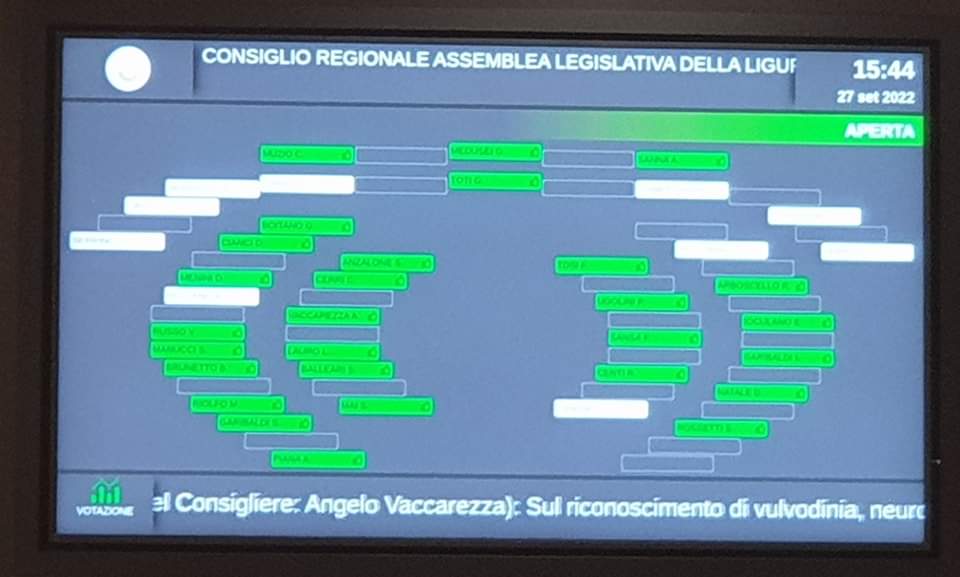 “E’ stato approvato poco fa durante la seduta del Consiglio Regionale l’ordine del giorno predisposto dal Capogruppo di Cambiamo con Toti Presidente Angelo Vaccarezza, avente ad oggetto il riconoscimento di Vulvodinia, neuropatia del pudendo e fibromialgia come malattie croniche e invalidanti”.