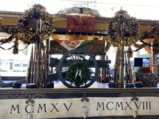 La bara prescelta fu collocata sull'affusto di un cannone e, accompagnata da reduci decorati al valore e più volte feriti, fu deposta in un carro ferroviario appositamente disegnato.