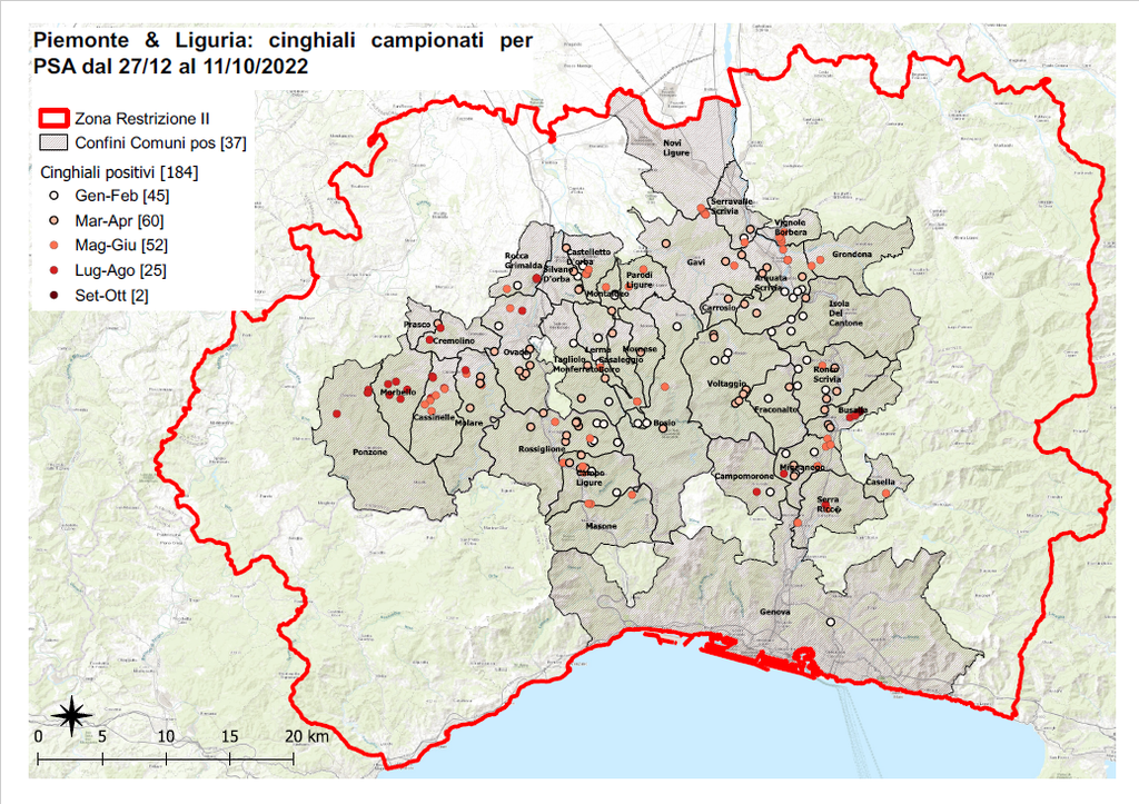 Un nuovo caso di peste suina tra i cinghiali è stato rilevato a Busalla in Liguria nella provincia di Genova. Sarebbe l'ottavo nel comune di Busalla e il 184esimo nella zona rossa, dall'inizio dell'emergenza. Dal 27 dicembre 2021, sono stati infatti riscontrati 119 casi positivi in Piemonte e 65 in Liguria.