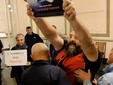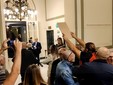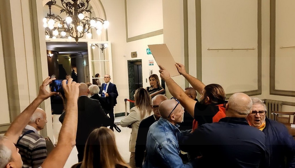 Alcuni minuti prima del suo arrivo, una decina di manifestanti con tanto di cartelli, ha atteso Bassetti che, invece di transitare dalla classica ‘Porta teatro’ è entrato al Casinò direttamente con la macchina. Una volta dentro il foyer ha risposto alle domande dei giornalisti e, poco dopo, è stato assalito e minacciato da alcuni manifestanti. Difeso dalle forze dell’ordine è potuto poi entrare in teatro, confermando di non voler risponde alle invettive: “Basta guardare chi è in teatro” ha detto.