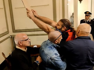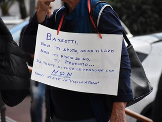 Alcuni minuti prima del suo arrivo, una decina di manifestanti con tanto di cartelli, ha atteso Bassetti che, invece di transitare dalla classica ‘Porta teatro’ è entrato al Casinò direttamente con la macchina. Una volta dentro il foyer ha risposto alle domande dei giornalisti e, poco dopo, è stato assalito e minacciato da alcuni manifestanti. Difeso dalle forze dell’ordine è potuto poi entrare in teatro, confermando di non voler risponde alle invettive: “Basta guardare chi è in teatro” ha detto.
