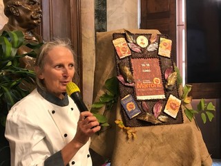 Al termine degli interventi il rito della rottura (solo in un piccolo angolo) della scultura di cioccolato realizzata dagli Amici del Cioccolato e il taglio del nastro, tra gli applausi.