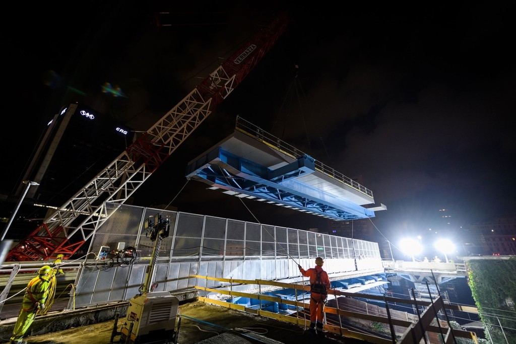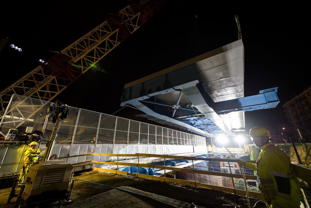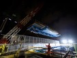 Le operazioni sono avvenute questa notte: il nuovo impalcato è lungo 32 metri e largo 7, con un peso di circa 140 tonnellate.