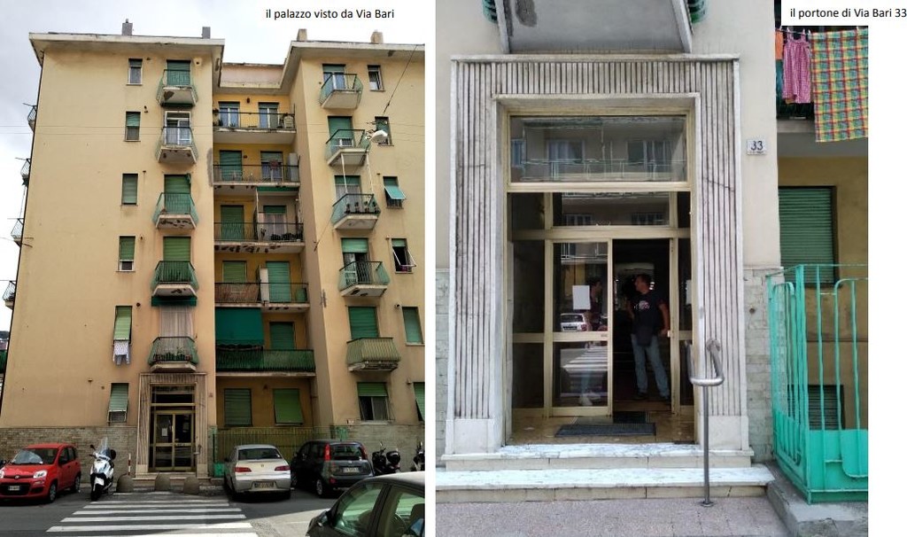 Per quanto riguarda l'immobile di via Bari, anche questo ristrutturato su progetto dell'architetto Cristina La Fauci, l'alloggio ha una superficie utile di circa 70 metri quadri con un ingresso molto grande ma poco utilizzabile da cui si accede direttamente ad una camera e ad un disimpegno che distribuisce l’accesso all’altra stanza, al bagno ed alla zona cucina/soggiorno. Il progetto prevede lo spostamento della zona giorno nella parte centrale in modo da consentire un accesso diretto sul balcone dalla cucina ed un utilizzo più razionale della zona di ingresso, con le camere da letto disposte ai lati della zona giorno così da consentire una maggior flessibilità di utilizzo dell’alloggio e la realizzazione di un soggiorno ampio e ben illuminato.