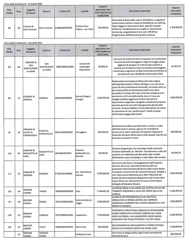 Per Sestri Levante e San Bartolomeo al Mare si tratta di rimodulazioni economiche a riconoscimento di ulteriori lavorazioni realizzate a completamento degli interventi.