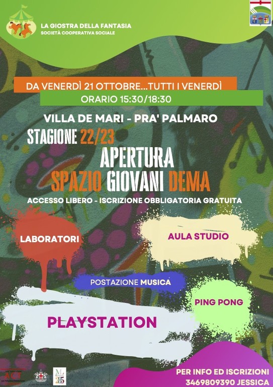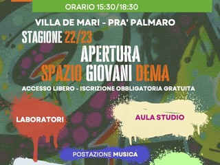 Se Sestri sarà il polo per il Municipio Medio Ponente, ad animare il Municipio VII Ponente sarà invece Villa De Mari, nella zona di Palmaro. Ancora La Giostra della Fantasia in campo, tutti i venerdì dalle 15,30 alle 18,30, con inaugurazione il prossimo 21 ottobre. Si chiamerà ‘Spazio Giovani Dema’ e, come per Sestri, ci sarà accesso libero e iscrizione gratuita (ma obbligatoria). Il menu è simile all’ex Biblioteca Bruschi: laboratori, aula studio, postazione musicale, tennis tavolo e PlayStation. In entrambi i casi, per avere informazioni si può contattare il numero telefonico 346 9809390. “Qui siamo radicati da più anni - prosegue Michele Calloni - anche se con qualche interruzione. Ci piace sottolineare i percorsi di cittadinanza attiva che possono nascere dal trascorrere i pomeriggi con noi: si sono ad esempio concretizzati nelle giornate di pulizia di Villa De Mari a Palmaro e pensiamo di ripetere lo stesso anche per Villa Rossi a Sestri Ponente”.