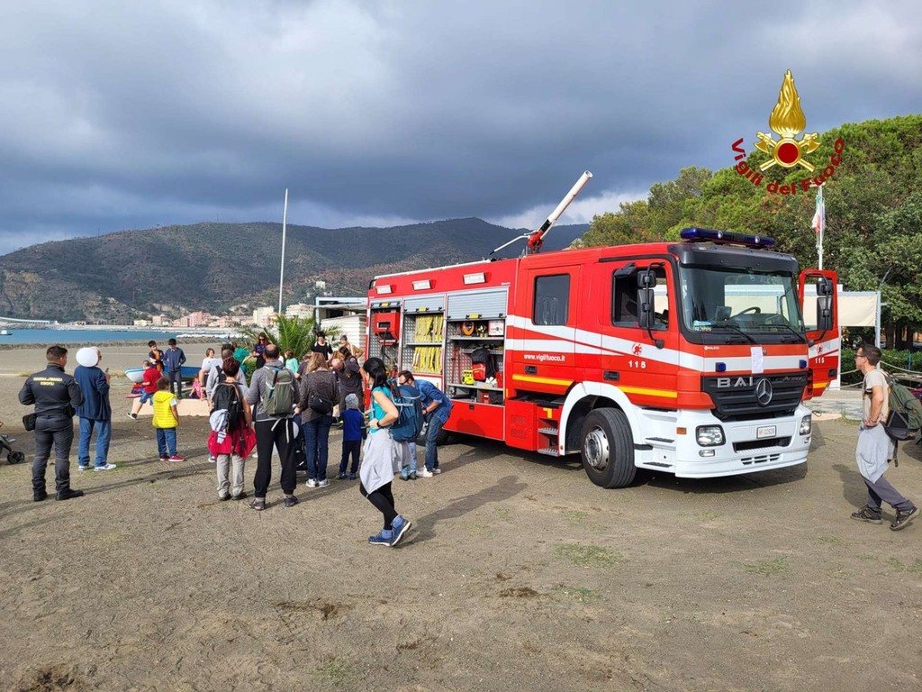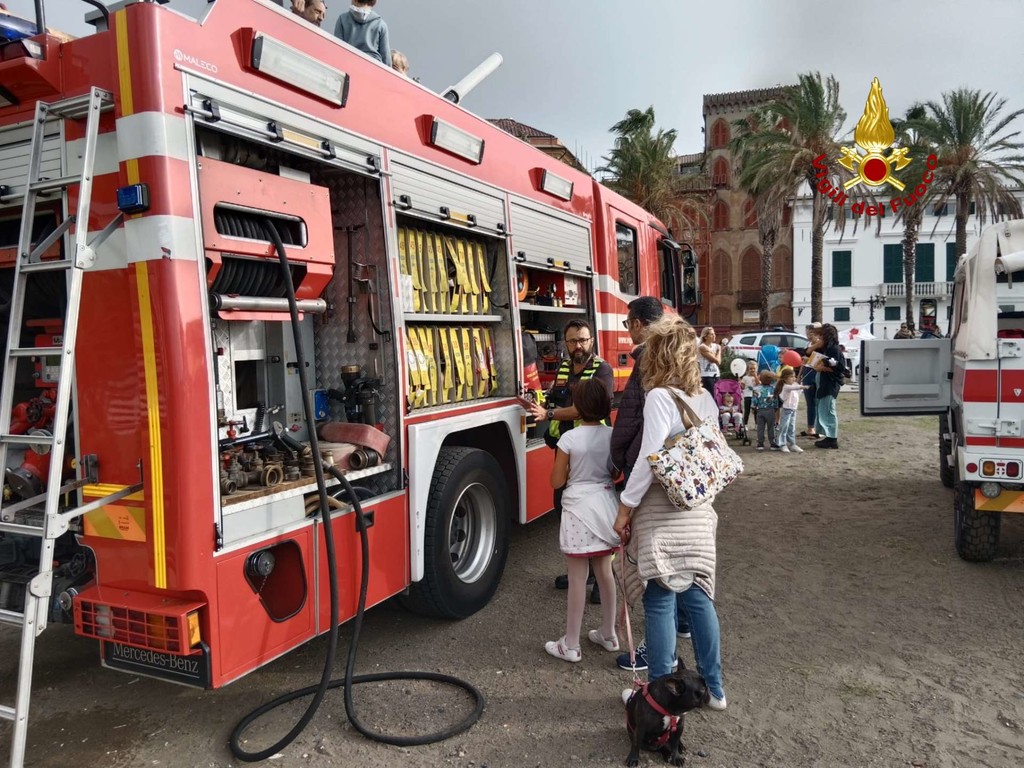 Anche quest'anno, in occasione dell'evento "Protezione Civile in festa", i Vigili del fuoco di Chiavari hanno partecipato con alcuni mezzi. Fra questi, il più versatile ed iconico, l'autopompa. Di fronte all'imponente mezzo, un capannello di gente, in particolar modo i bambini, ha fatto sosta.