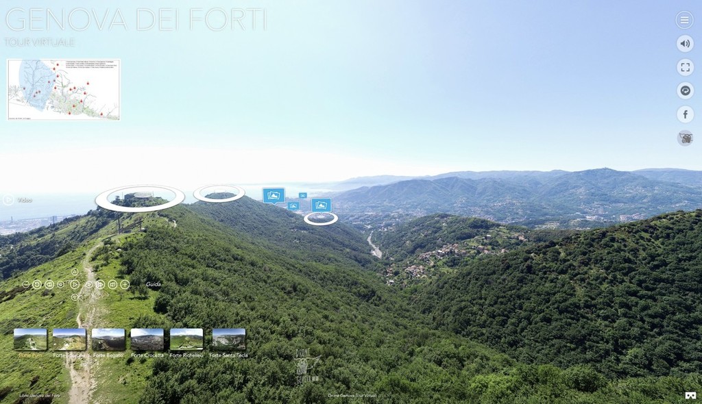 Di questi, 6 forti sono visitabili in modalità virtual tour panoramico a 360° e gli altri 10 rappresentati con gallerie fotografiche e video. Tra questi ultimi, è presente anche Forte Guano, i cui resti sono ora su proprietà privata e quindi non visitabile altrimenti. Il tour comprende anche informazioni riguardo alla data di costruzione dei forti e contenuti speciali, come un video riassuntivo con tutte le immagini dei forti, visitabile cliccando sull’icona “video” sulla sinistra.