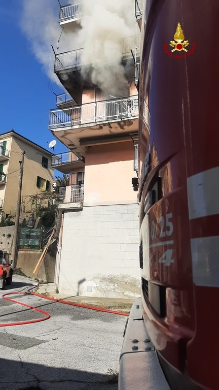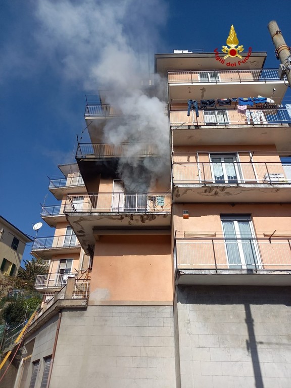 Intervento impegnativo per i vigili del fuoco, che a Busalla, in via Martiri di Voltaggio, hanno domato le fiamme in un appartamento sito al secondo piano.