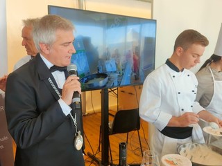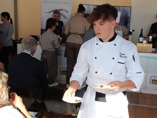 Lo Chef Renato Grasso ha dunque messo in padella dell’Olio Extravergine di Olive Taggiasche di Raineri e uno spicchio d’aglio di Vessalico, e fatto rosolare per pochi minuti il filetto di Baccalà con “Il Sale Della Liguria”. Ha poi sfumato il tutto con mezzo bicchiere di Pigato e un accenno di grappa di Ormeasco, aggiungendo infine le Olive Taggiasche. A parte ha preparato la spuma di Castagne Garessine De.Co., che, a fine cottura, ha accostato al Baccalà e servito in abbinamento con il Pigato ‘Moie, della Cantina Ramoino. Anche questa ricetta ha esaltato i sapori più autentici del nostro entroterra, quelli che potrebbero, con la loro valorizzazione, destagionalizzare l’offerta climatico-balneare, attualmente sempre più concentrata nei mesi di luglio e agosto. "Solo rafforzando la partnership tra costa e territori al di là del mare - come sottolineano gli allievi del Corso di Formazione per Tecnico della Valorizzazione dei Prodotti Territoriali e delle Produzioni Tipiche" si possono intercettare i nuovi trend di domanda esperienziale legati al turismo slow e all’enogastronomia".